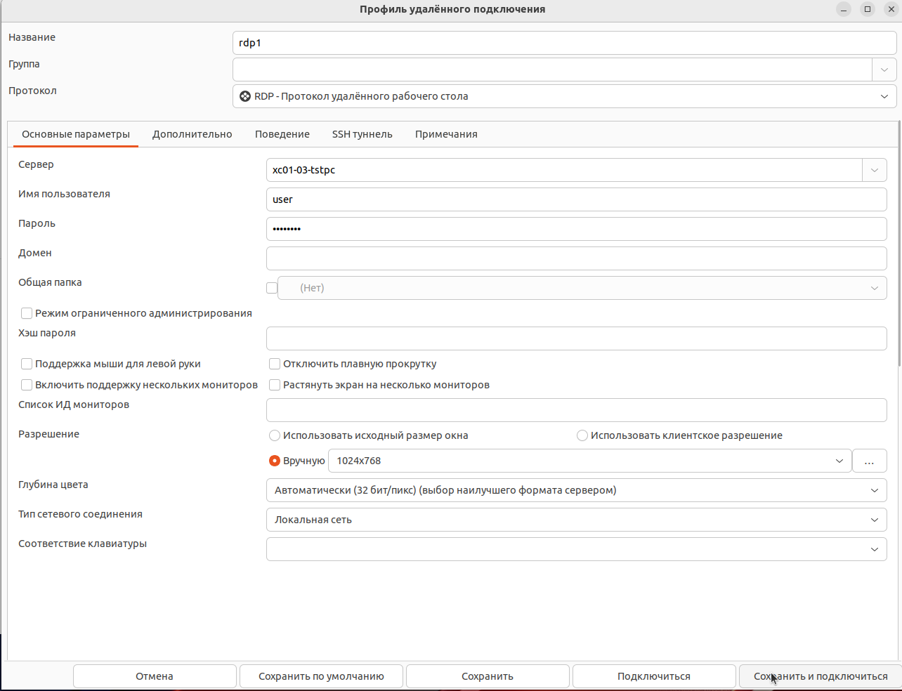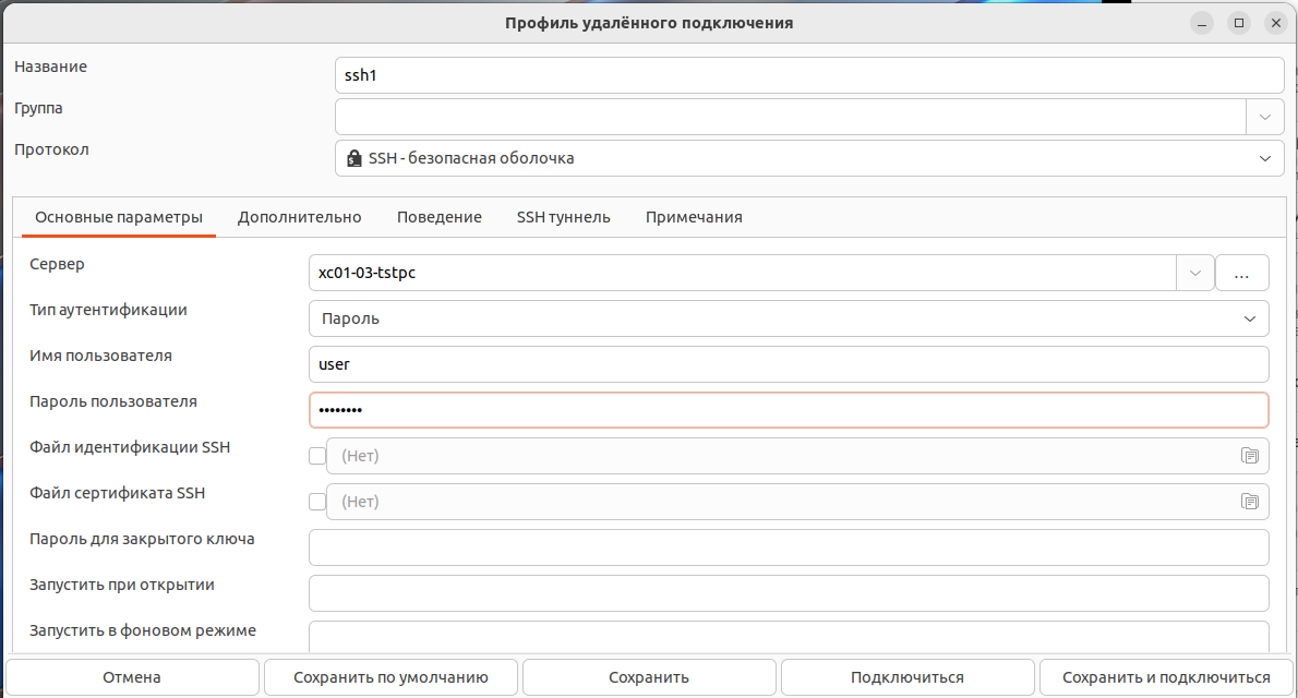 Сохраните настройки, перейдём к клиентской части. Откройте Remmina на ПК, с которого вы бы хотели осуществить подключение к серверу на X C01-03: