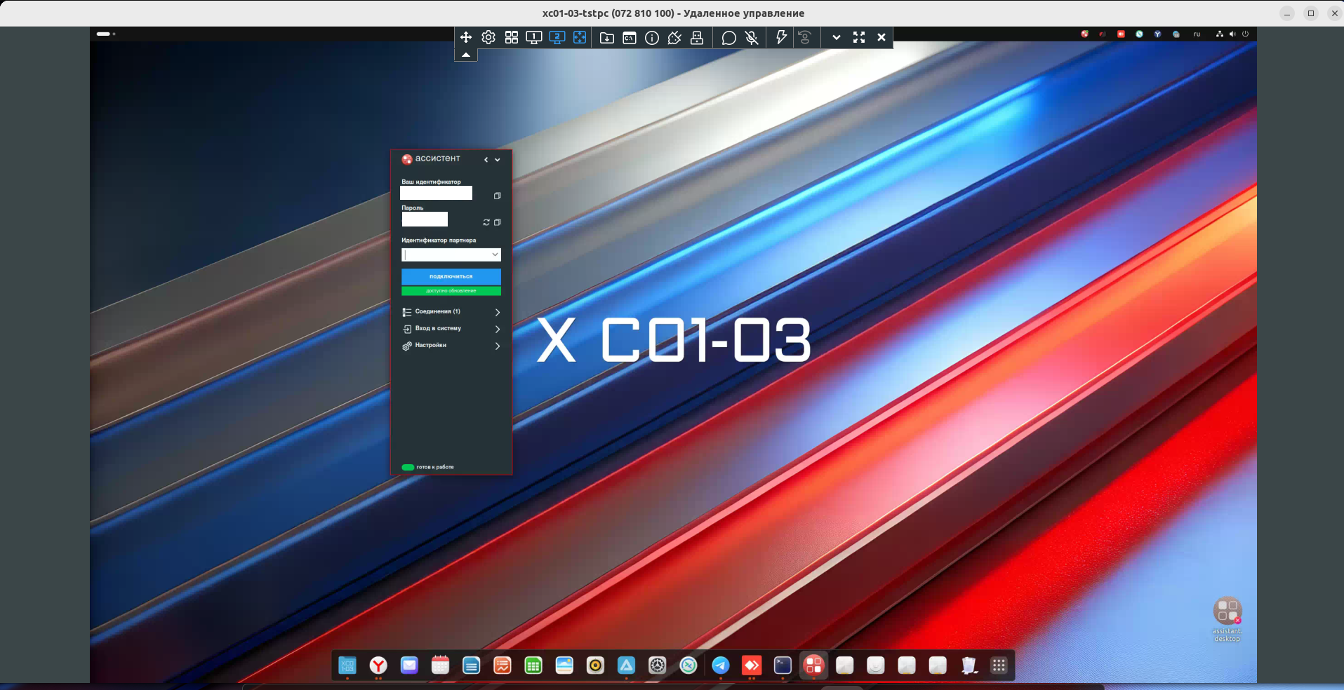 Ассистент - это российское ПО для удаленного подключения. В X C01-03 его установка производится с помощью deb-пакета с официального сайта https://мойассистент.рф/скачать/.