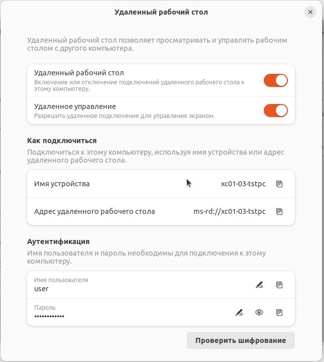Протокол RDP, также известный как ms-rd или Microsoft Remote Desktop, это самый популярный в мире протокол удаленного рабочего стола. С последними обновлениями X C01-03 он стал доступен и в нашей системе с помощью предустановленного пакета gnome-remote-desktop, придя на смену устаревшему протоколу VNC.