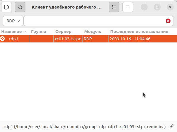 После добавления записи в Remmina к серверу можно подключиться двойным щелчком: