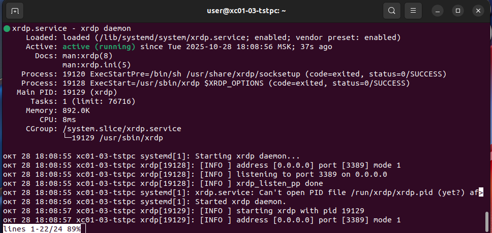 После применения данной настройки перезапустите сервер XRDP и разрешите автозапуск службы: