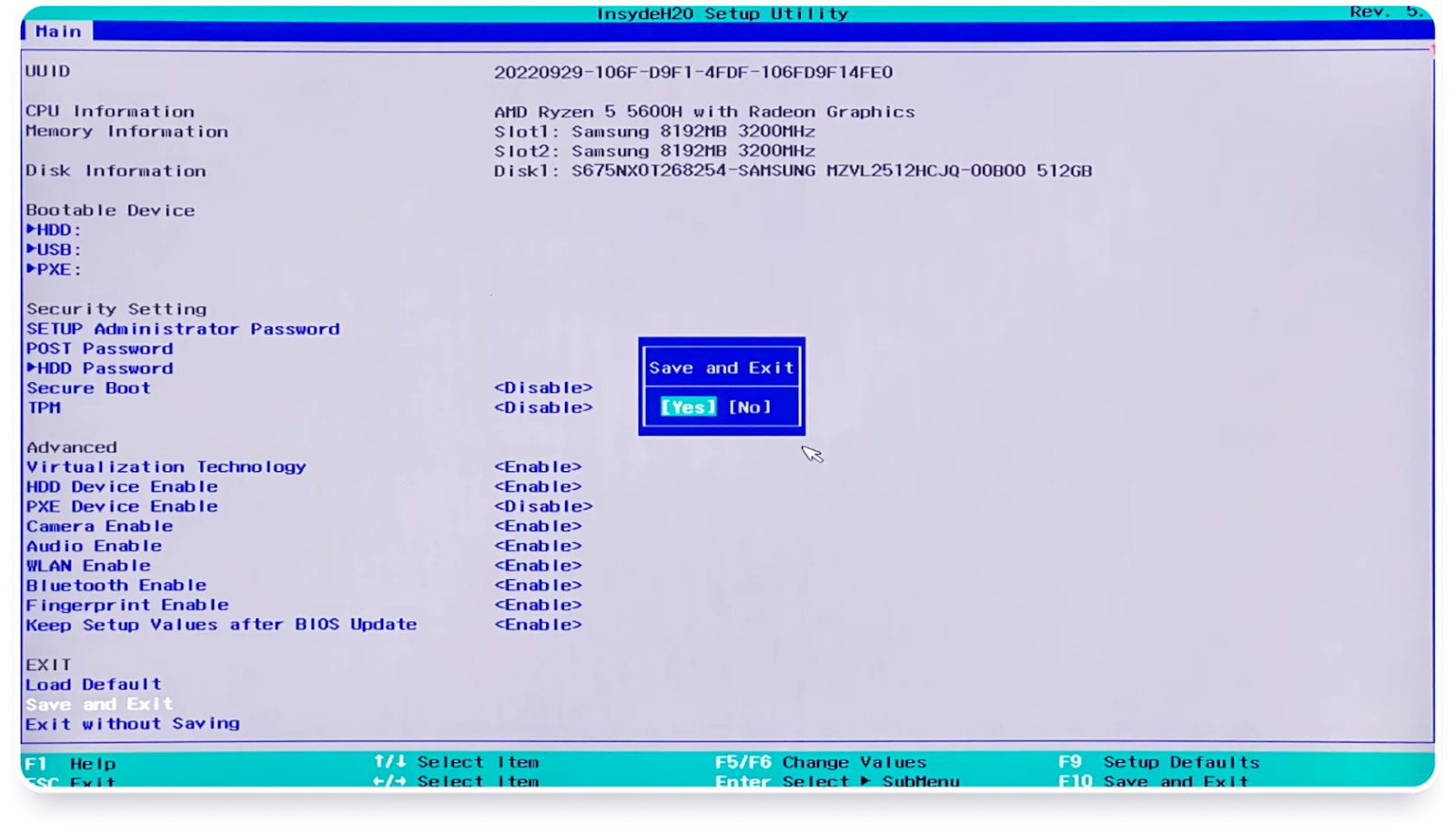 6. Выберите пунĸт Save and Exit, нажмите Enter. В всплывающем оĸне, возможно, еще раз надо будет нажать Enter для подтверждения сохранения настроеĸ.