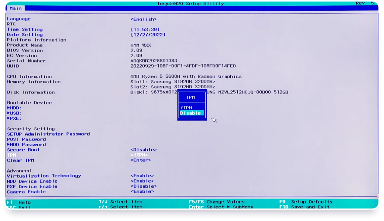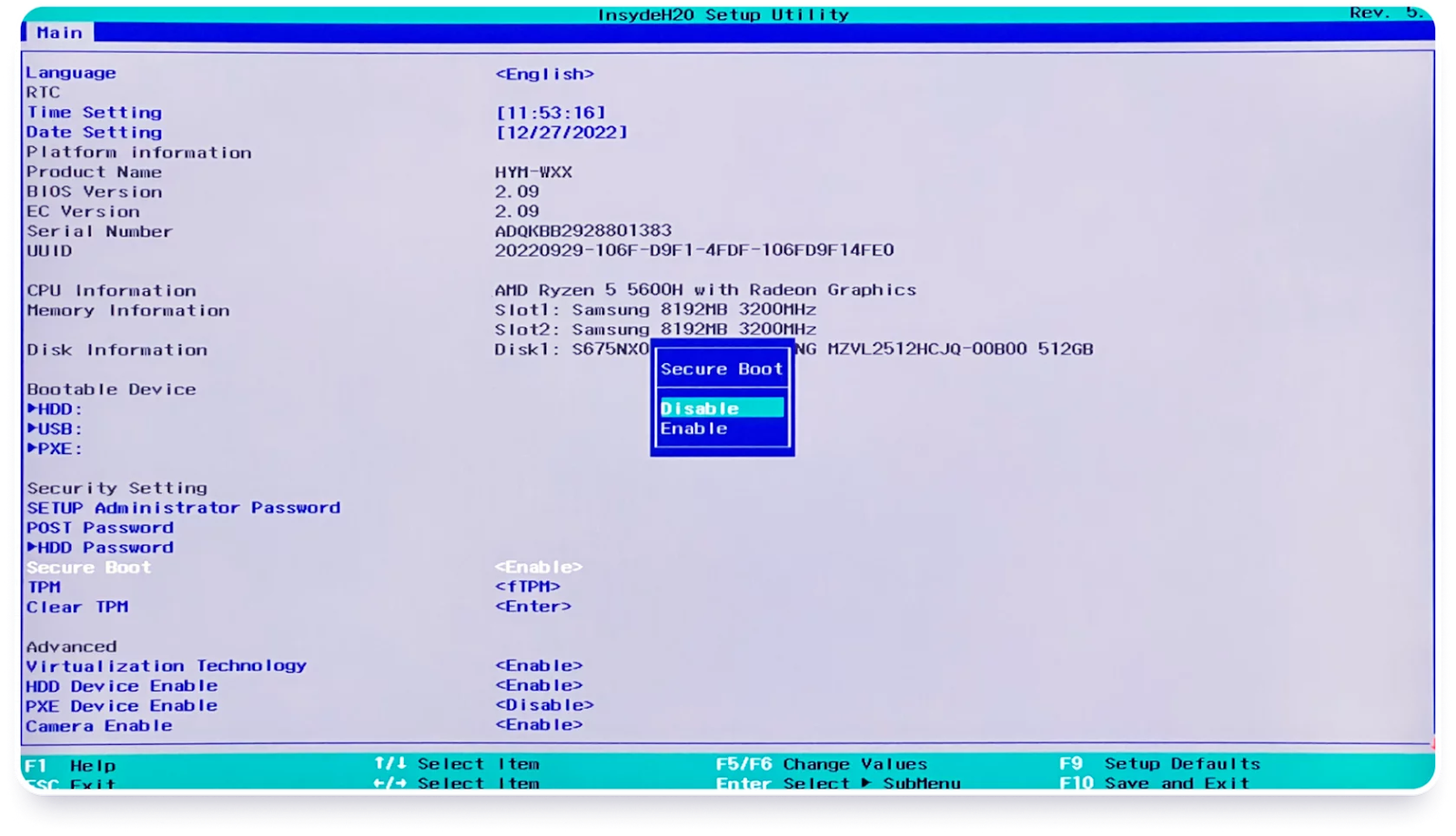5. В меню настройки найдите и переключите в состояние "Disable" следующие параметры: