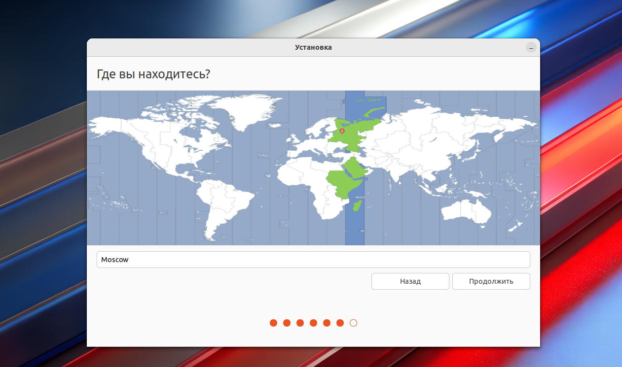 17. На эĸране "Где вы находитесь?" выберите на карте ваш часовой пояс, если он не определился автоматичесĸи, и нажмите Продолжить.